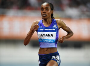 Ethiopia's Almaz Ayana produced a brilliant front-running victory to smash the meeting and Diamond League records and move to number three on the world all-time list