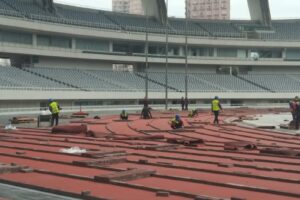 A new track is being installed in Shanghai Stadium in lead up of the IAAF Shanghai Diamond league 2019.